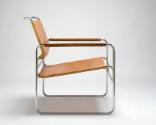 Metall: Stahlrohr, verchromt. Leder