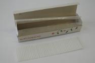MediumPapier: Halbkarton, bedruckt, innen gewellt und mit Pergaminpapier. Innenschale Kunststoff: Polystyrolfolie, in Form gepresst.