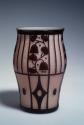 MediumGlas: Farbloses Glas mit opak lachsfarbenem Unterfang und schwarz-violettem Überfang, formgeblasen, Dekor in einfacher Hochätzung