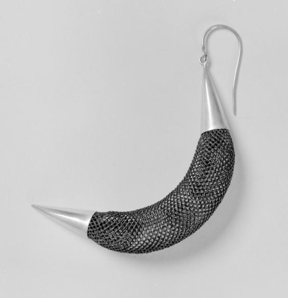 DescriptionIn den achtziger jahren begann die Münchner Bildhauerin sich die Technik der Haarklöppelei anzueignen. Ohringe, Armbänder, Halsketten und Broschen hat sie seither angefertigt. Die Objekte sind mit geometrisch abstrakten Metallfassungen versehen. Ihre Arbeiten leben von den Kontrasten zwischen Weichheit und Härte, Durchlässigkeit und Dichte, organischer und anorganischer Form. Zudem besitzen sie trotz ihres geringen Gewichtes Stabilität und Dauerhaftigkeit.Object numberKGS-2000-0010